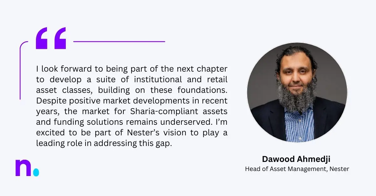 We are confident Dawood’s extensive experience in M&A, corporate finance, and Islamic finance will propel Nester to new heights. By combining his expertise with our vision for inclusive, ethical finance, we aim to strengthen Nester’s position as a leader in Sharia-compliant property investments in the UK—and to expand our presence in the broader global market.